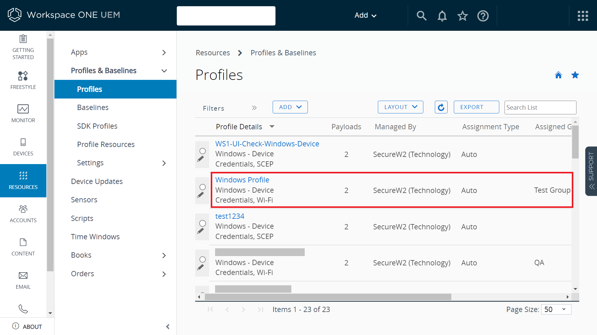 - Navigate to Resources > Profiles & Baselines > Profiles.